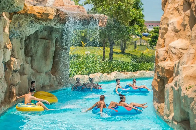 1/ Công Viên nước với 11 trò chơi sôi động, cuồng nhiệt xua tan cái nóng ngày hè và trải nghiệm các đường trượt sẽ khiến bạn lạc trôi giữa đợt sóng nước, tận hưởng cảm giác đầy kích thích của những phút giây rạo rực. Hay đường trượt mang đến những trải nghiệm hồi hộp và lý thú không kém như: Đường Trượt Lốc Xoáy Tornado; Đường Trượt Siêu Lòng Chảo; Đường Trượt Boomerang; Bể Tạo Sóng