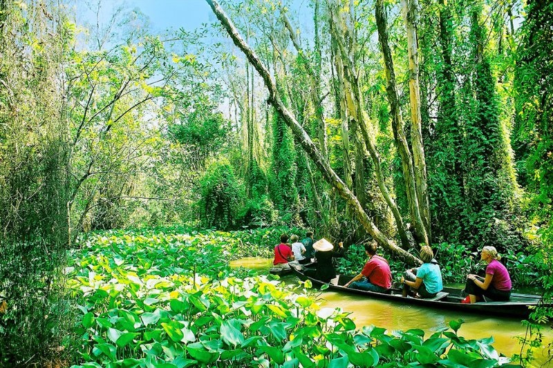 Tại đây Quý khách được các cô du kích đưa xuồng ba lá đến tham quan các căn hầm bí mật nằm ẩn mình trong khu rừng tràm nguyên sinh – nơi đây từng được chọn quay trong phim Đất Phương Nam.