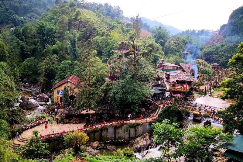 Buổi chiều: HDV đưa Đoàn đi thăm KDL bản Cát Cát của người Mông quần cư theo phương thức mật tập, nơi có những cây cầu treo bắc qua suối, có thác Cát Cát thơ mộng.
