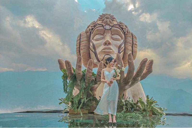 Trong đó phải kể đến các tác phẩm điêu khắc gây sốt: Tượng cô gái Moana, bàn tay khổng lồ, cổng trời Bali, hồ vô cực, xích đu tử thần và nhiều góc check in siêu hót nữa…